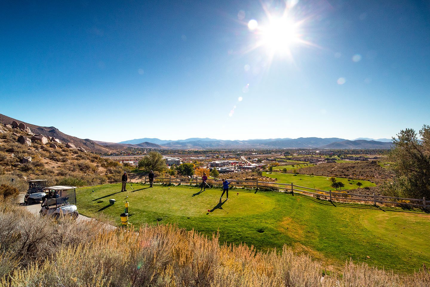 Nestled against the beautiful Sierra Nevada Mountains in northwest Carson City our scenic 18-hole championship layout offers “two courses in one”. Big views of the Carson Valley to the east are yours to behold as you wind your way up the front nine to the highest holes at 6 and 7. The back nine offers level terrain that has you looking directly west towards the Sierra Nevada that separate Silver Oak from the shores of Lake Tahoe by just 9 miles.