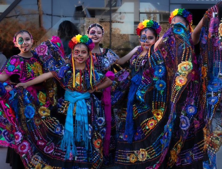 Día de los Muertos (Day of the Dead) is a traditional Mexican holiday that pays tribute to the lives of loved ones who have passed on. The Día de los Muertos celebration traces its roots to the time of the Aztec people in Central America but was later influenced by cultural and religious practices brought by the Spanish. It is widely celebrated today in Mexico and the American Southwest, though celebrations can now be found throughout the United States due to its universal theme of remembrance, honor, and love. Special exhibits, called altars, are set up as memorials to departed loved ones, and often contain items that were special to them. This may include a photo of the person, samples of their favorite foods, symbols of activities they loved, and bright yellow flowers. Pan de muerto (a typical day of the dead bread) is abundantly displayed during the festival. Sugar skulls (calavera) are decorated, and fancy paper cut-outs (papel picado) add color to homes, tables, and altars.