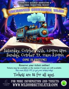 Get ready for a magical adventure! All aboard the Enchanted Storybook Train! The Carson City Railroad Association, in partnership with Wild Horse Productions, is thrilled to bring back the Halloween train ride at Mills Park for Nevada Day weekend!