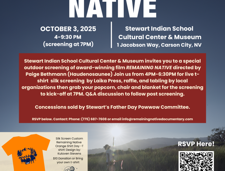 Stewart Indian School Cultural Center & Museum invites you to a special outdoor screening of award-winning film REMAINING NATIVE directed by Paige Bethmann (Haudenosaunee).