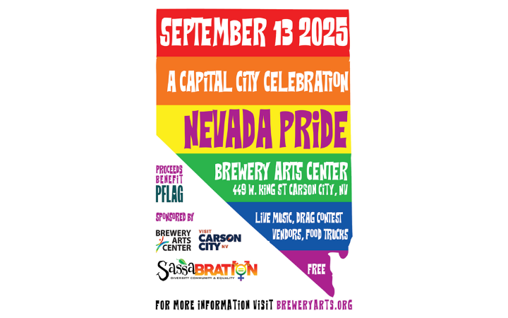 Join us in celebrating Nevada Pride, most lovingly know as Sassabration on Saturday, September 13th, 2025. This year’s event will be relocated to the Brewery Arts Center with music, a drag contest, vendors, food, and fun for the whole family.